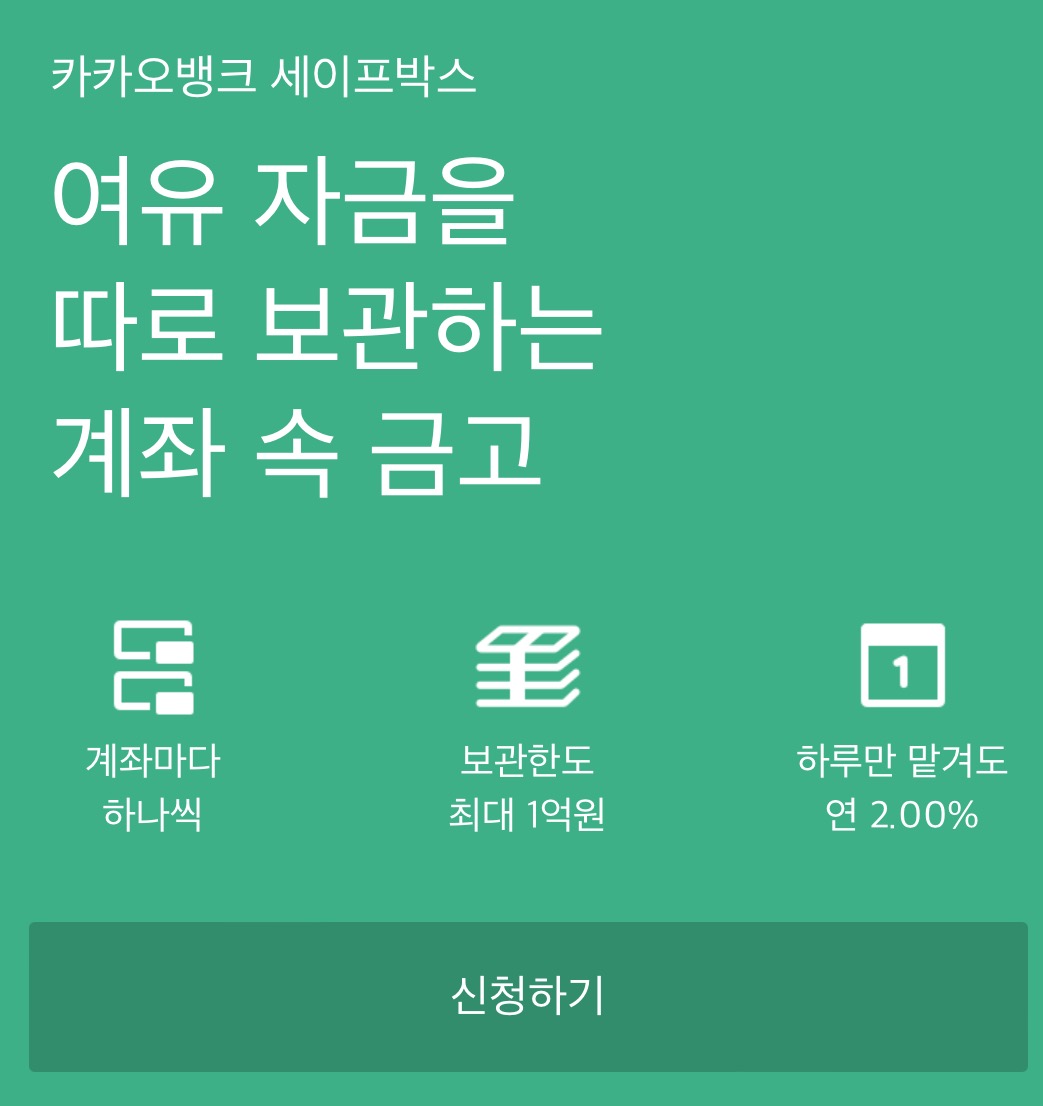 - 가입제한: 카카오뱅크 입출금통장 또는 개인사업자통장을 통한 연결만 가능하며, 연결된 계좌당 1개씩만 개설 가능