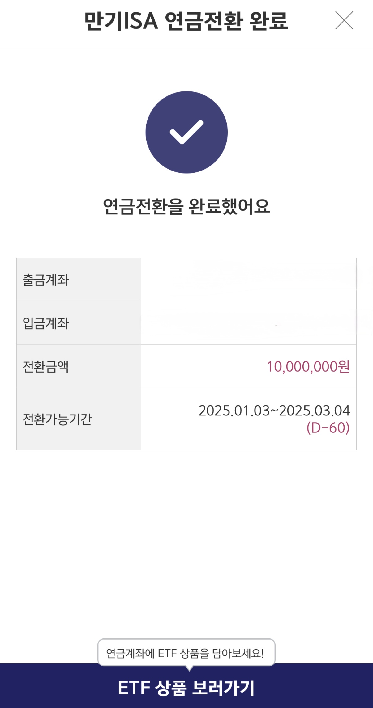 ISA 만기일 기준 60일 이내에